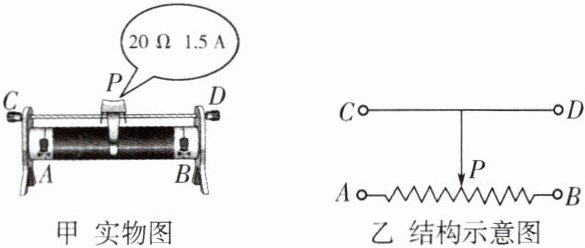 2.电阻丝外面涂着绝缘层,密绕在绝缘管上,图中的白线位置绝缘层已经刮掉,电阻丝可以与滑片P 相连。