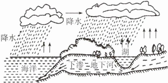 13. 如图是大自然中水循环的示意图,江、河、湖、海及大地表面层中的水不断