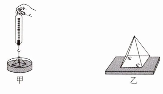 13. 将很干净的玻璃板挂在弹簧测力计下,使玻璃板水平接触水面,如图甲所示。然后稍稍用力向上拉动玻璃板,玻璃板并未与水面分离,却发现其边缘处的水面稍微向上弯曲,如图乙所示,这是因为