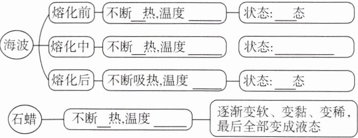 (3)数据及现象记录:每隔相同时间记录温度计的示数及物质的对应状态,填入表中。