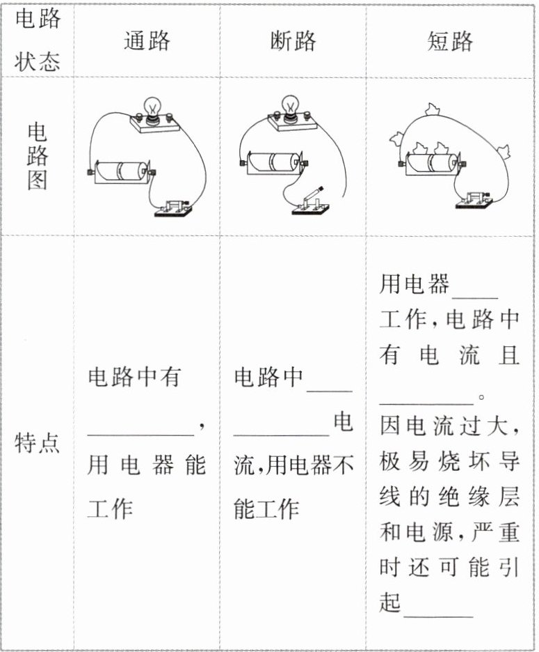 (1)正常接通 工作 切断 电源的正、负极 电流 没有 不 很大 火灾