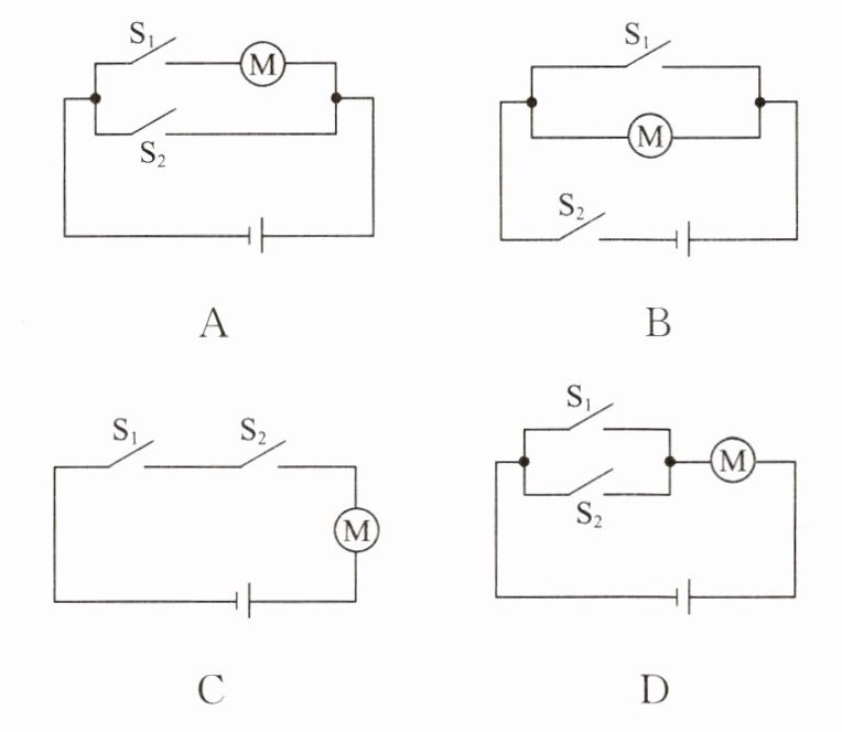 11. 喜爱物理的小明想设计一个双钥匙电动安全锁,这里钥匙相当于“开关”,要求是两把钥匙同时使用(开关闭合)才能开锁,下列符合设计要求的电路图是(