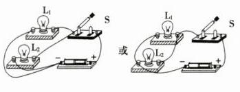 1. 思考:用一个电源、两个灯泡、一个开关和一些导线组成电路,要想让两个小灯泡都发光,可以有几种接法?