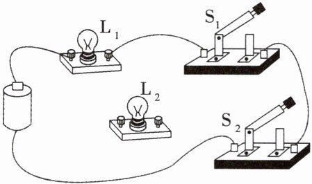 8. 完成电路的连接,要求两灯并联$,S_1$控制$L_1,S_2$在干路。