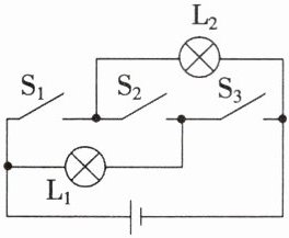7. 如图所示,要使$L_1$和$L_2$并联接在电路中,应闭合的开关是
