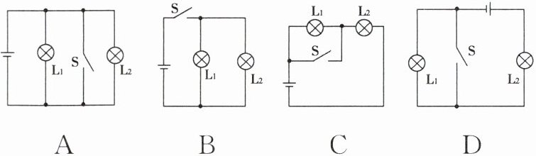 5. 如图所示的电路中,开关 S 闭合后,两个灯泡都发光的是(