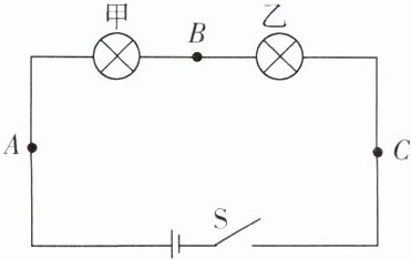 6. 某实验小组用两个相同的小灯泡连接了如图所示的串联电路,当开关闭合后,甲、乙两灯都不亮。为了找到故障原因,小张用一根导线来检查,当导线与 A、B 两点连接时,甲灯不亮、乙灯亮;当导线与 B、C 两点连接时,两灯都不亮。由此推测故障是(