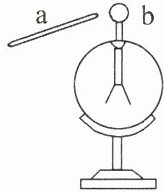 11. 如图所示,用丝绸摩擦过的玻璃棒 a 去接触不带电的验电器金属球 b 后,验电器的两片金属箔张开,则下列说法正确的是(