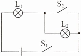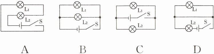 7. 如图所示,当开关 S 闭合时,灯泡$ L_1 $与$ L_2 $组成串联电路的是(