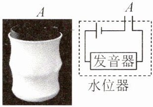 8. 小明同学设计并制作了一个“盲人水杯”,其工作原理如图所示。杯中近杯口处 A 点是水位器的两个金属触点,当杯中的水位达到 A 位置时,水位器会发出音乐声,表示水已盛满。杯口处的两个金属触点的作用相当于(