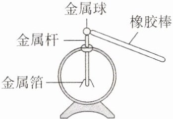 的仪器,用毛皮摩擦过的橡胶棒接触验电器的金属球时,现象如图所示,此过程中验电器的金属箔得到