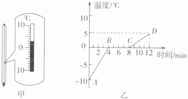 图甲是探究冰熔化时温度变化规律实验中某时刻温度计的示数,图乙是根据实验数据画出的图像。