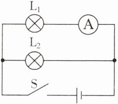 (2)小薇先将电流表接在 $ L_1 $ 所在的支路上,闭合开关后,观察到灯 $ L_2 $ 发光,但灯 $ L_1 $ 不发光,电流表的示数为零,电路可能存在的故障是