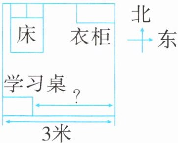 2. 爷爷家没有高度合适的桌子,爸爸就给优优买了一个可以调节高度的学习桌,桌面长8分米、宽5分米。按右图所示摆放,学习桌的东侧离房间东面墙的距离有(