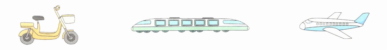 1. 新情境[生活常识]优优一家坐动车去爷爷奶奶家。下面是几种常见的交通工具,请在括号里填上合适的单位。