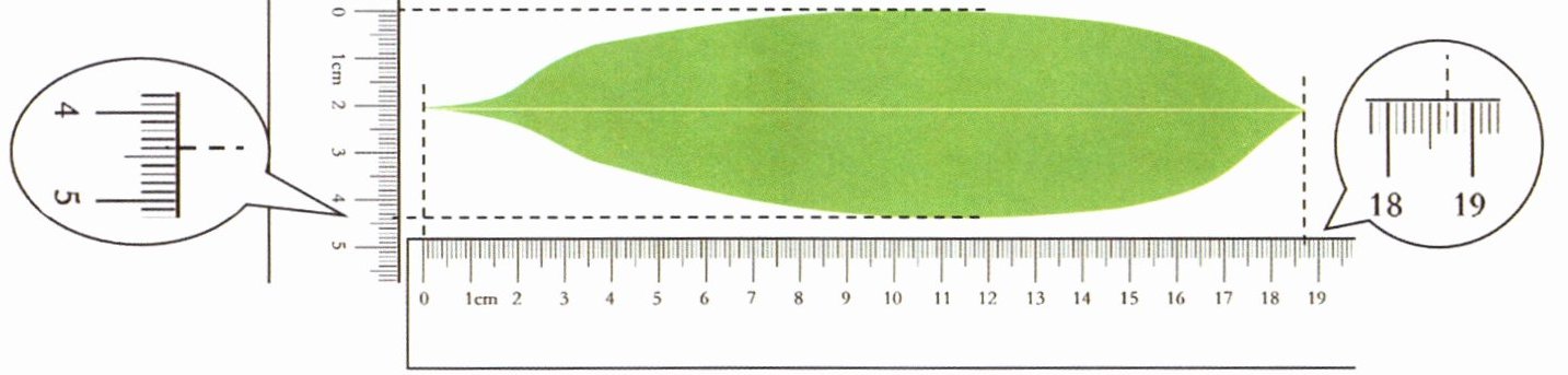 3. 奶奶带大家一起包粽子,优优对粽叶感到好奇,用尺子测量了粽叶的长和宽,如图,这个粽叶的长是(