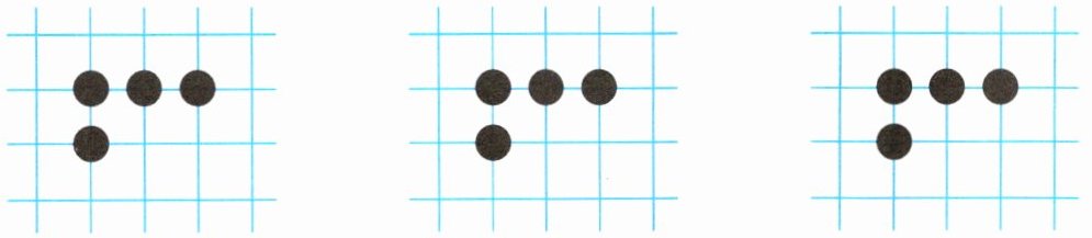 4. 新角度 [传统文化]围棋起源于中国,至今已有 4000 多年的历史。请你用三种不同的方法在下面的棋盘上各添上一颗棋子,使其与原本的棋子组成轴对称图形。