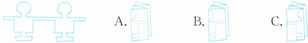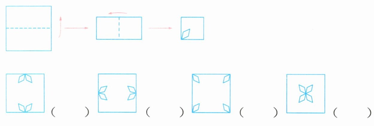 3. 新素养[空间观念]如图,在对折好的纸上剪一剪,打开后是哪一个图形?在□里画“√”。