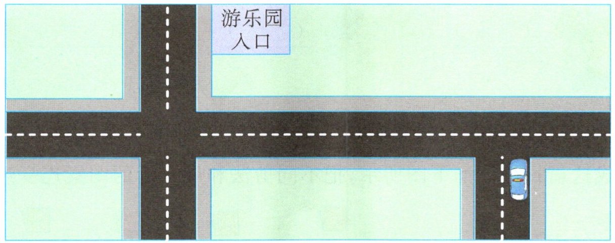)方向盘右转,转过路口后,再向前开一会儿就到达游乐园了。