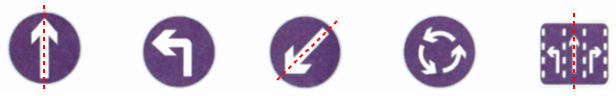 1. 新情境[真实生活]优优一路上看到了许多交通指示牌,下列指示牌中是轴对称图形的在( )里画“√”,并画出它的对称轴。