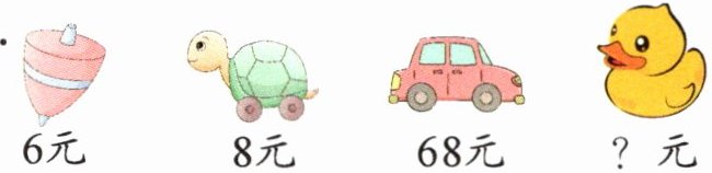 (2)优优在玩具店买了 5 只小黄鸭和一个陀螺,共花去 21 元。每只小黄鸭多少元?