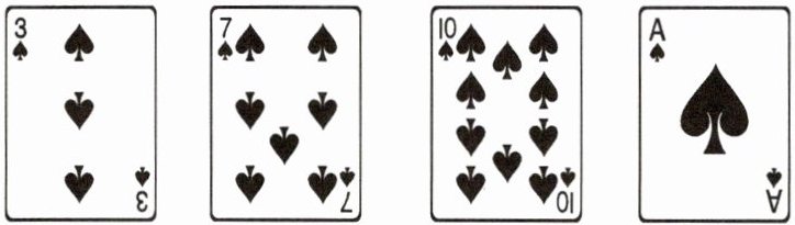 3. 数学游戏:4 张牌全用上,用“+”“-”“×”“÷”使它们的得数为 24(A 表示 1)。