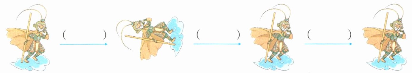 6. 新角度[传统文化]优优在游乐园里看到了皮影戏表演,工作人员在幕布后面操作皮影做了以下动作,在( )里填上“平移”或“旋转”。
