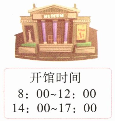 (2)8:00~12:00 是 4 小时,14:00~17:00 是 3 小时,4+3=7(时)答:每天开馆 7 小时。
