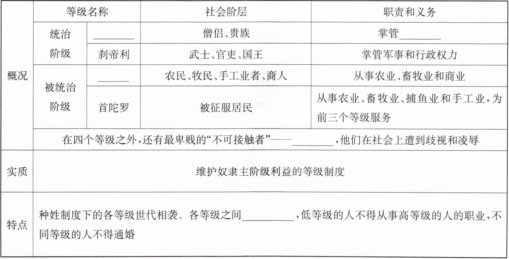 | |统治阶级|______|僧侣、贵族|掌管______|
