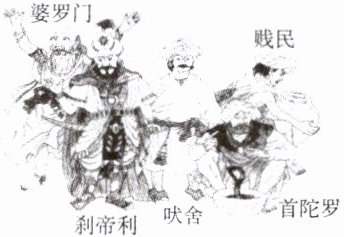 探究1:制度:古代印度的种姓制度。等级:婆罗门、刹帝利。