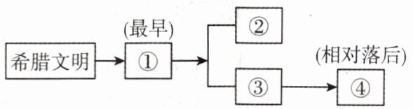 1. 下图是希腊早期文明的发展历程示意图。图中序号①代表的是( )