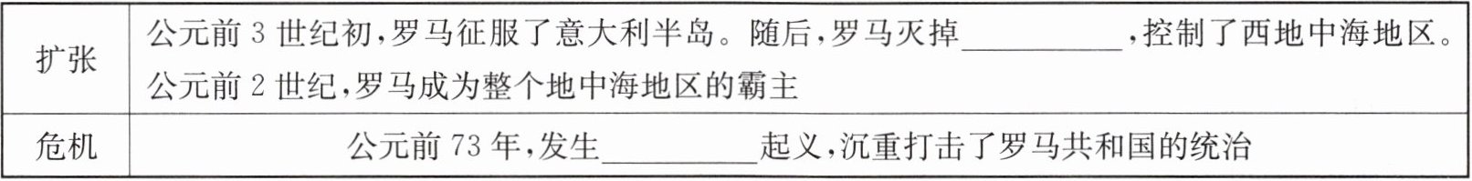 |危机|公元前73年,发生______起义,沉重打击了罗马共和国的统治|