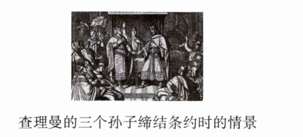 7. 查理继任法兰克王国国王后四处征伐,法兰克王国成为当时西欧最大的王国。下列有关查理的表述正确的是( )