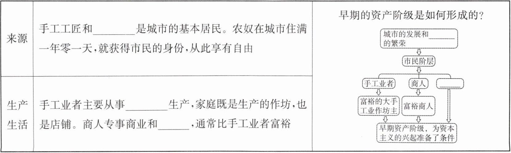 商人 小商品 贸易 随着城市的发展,手工业者和商人不断分化,出现了富裕的大手工业作坊主、商人和银行家等,他们成为早期的资产阶级。