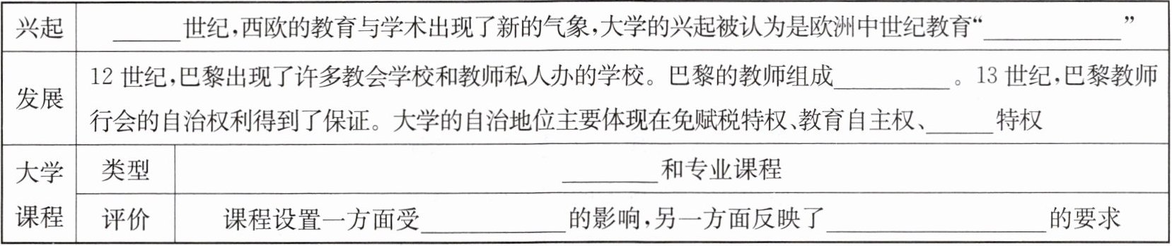 |兴起|______世纪,西欧的教育与学术出现了新的气象,大学的兴起被认为是欧洲中世纪教育“______”|