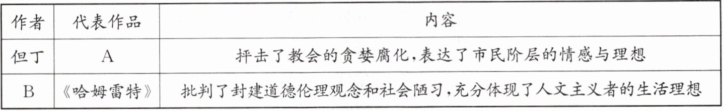 |但丁|A|抨击了教会的贪婪腐化,表达了市民阶层的情感与理想|