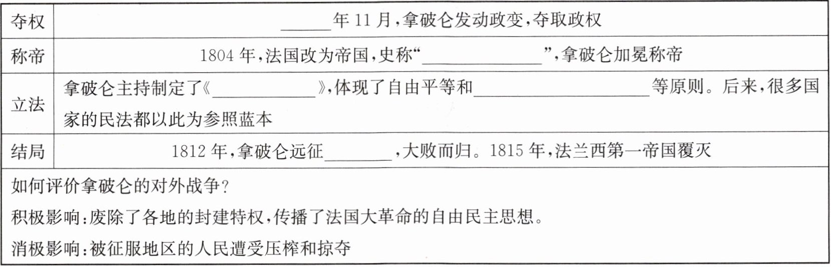 【易错易混】拿破仑采取的措施巩固了法国大革命的成果。