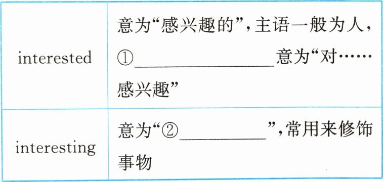 (2)①be interested in ②有趣的