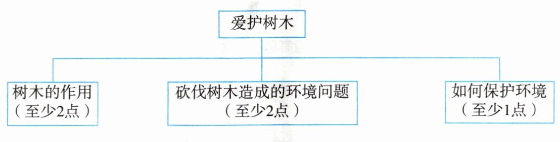 51. 假设你所在的学校即将举办环保节。活动宣传小组想让你负责介绍树木的作用、砍伐树木对环境造成的不良影响并倡导人们爱护树木,保护环境。请你根据以下思维导图的内容提示写一篇英语短文。