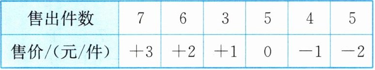 6. 某儿童服装店以每件$32元的价格购进30$件连衣裙,针对不同的顾客,$30$件连衣裙的售价不完全相同,若以$47$元/件为标准,将售价与标准的偏差记为正数或负数,则记录的结果如下表所示。