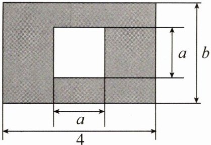 5. 某市有一块长为 $4m$,宽为 $b m$ 的长方形地块,如图所示(单位:$m$)。规划部门计划将阴影部分绿化,中间正方形空地将修建一座雕像。用含 $a$,$b$ 的式子表示绿化的面积是