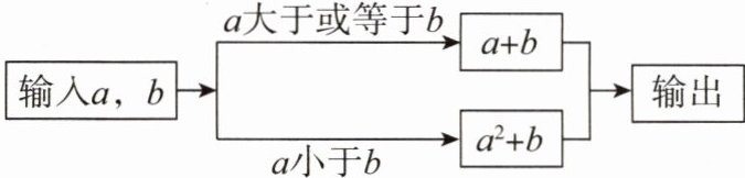 解:因为a=4,b=-2,所以a> b.所以把a=4,b=-2代入a+b,得4+(-2)=2.所以当输入a=4,b=-2时,输出的结果为2.