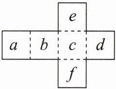 解:首先要辨认出哪两个面是相对面。假设以c为底,将b,e,f,d分别向上折,则a和c,b和d,e和f分别为相对面,只要在相对面上任意填上一组相反数即可,所以答案不唯一,其中一种情况如图所示。