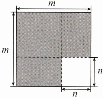 18. 如图,将边长为 $m$ 的正方形纸板沿虚线剪成两个小正方形和两个长方形,拿掉边长为 $n$ 的小正方形纸板后,将剩下的三块拼成新的长方形。