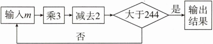 21.解:运行1次,$5×3-2=13<244;$运行2次,$13×3-2=37<244;$运行3次,$37×3-2=109<244;$运行4次,$109×3-2=325>244.$所以当$m=5$时,运算进行4次才会停止.