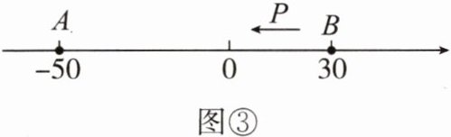 (2) 如图③所示,$A$,$B$为数轴上两个点,点$A表示的数为-50$,点$B表示的数为30$.现有一动点$P从点B$出发向左运动,到达点$A$停止.点$P$运动到数轴上的什么位置时,点$P$,点$A和点B$中恰有一个点为另外两个点的奇点?
