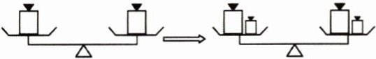C 解析:观察题图可知,在原来平衡的天平两边同时加上一个相同的小砝码,天平两边仍然平衡,所以符合等式的性质1,即在等式a=b的两边都加c,得到a+c=b+c.故选C.