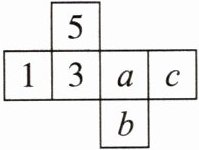 6 2 4 解析:由题图可知,1与a相对,5与b相对,3与c相对.因为1+a=5+b=3+c,且六个面上的数字分别为1,2,3,4,5,6,所以a=6,b=2,c=4.