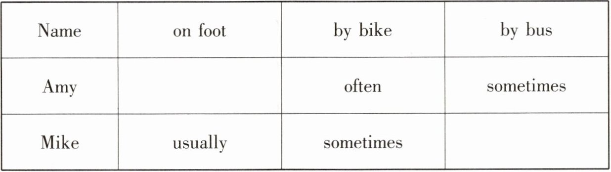 假设你叫埃米(Amy),请根据表格内容用英语写一写你和你的好朋友迈克(Mike)上学的方式。不少于5句话。