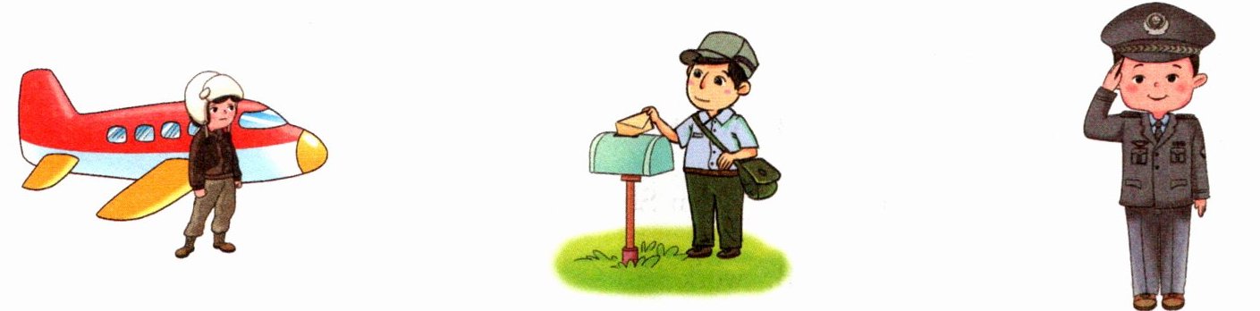 1. pilot 2. postman 3. police officer 4. fisherman 5. coach